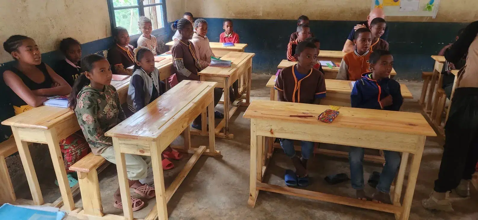 Our Trustee Chris Swinburn and his wife Emma made a very large donation from an inheritance and partnered with Feedback Madagascar in providing school desks and major renovation in very rural isolated schools.